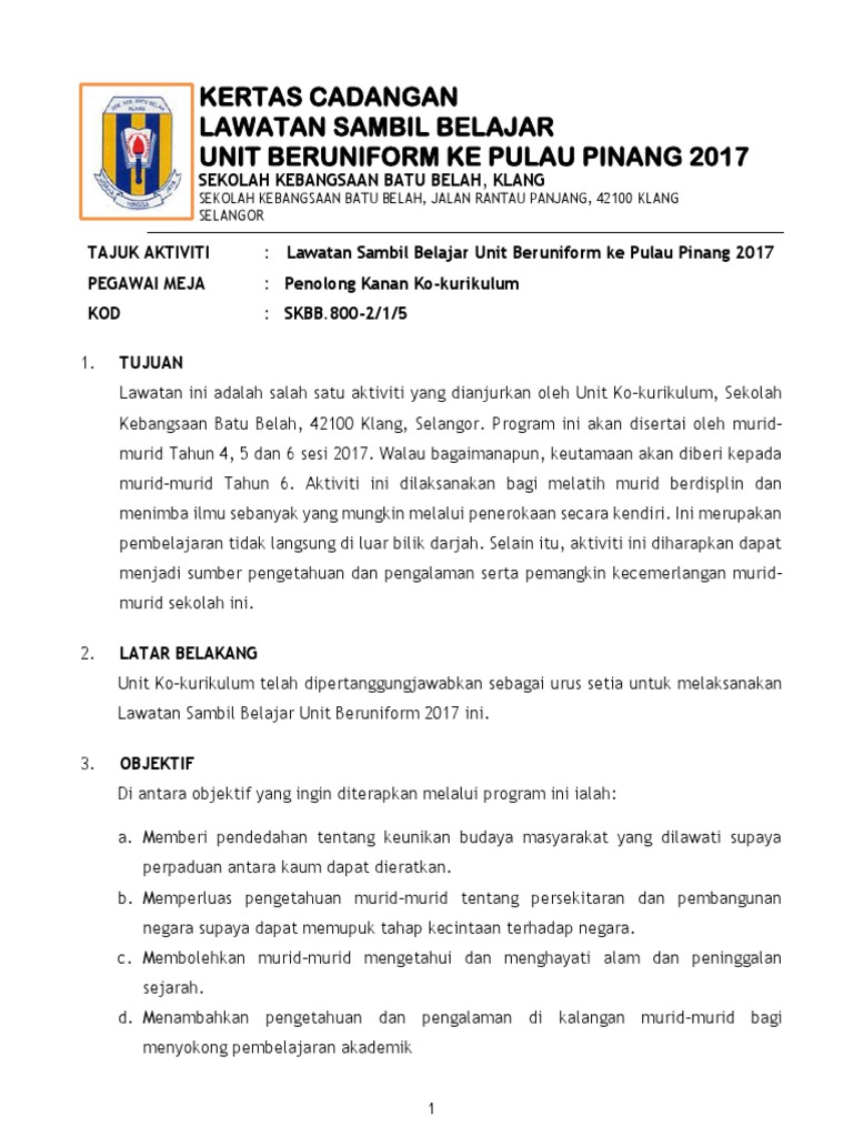 Kertas Kerja Lawatan Ke Semenanjung Docx Document from static.fdokumen.site Sehubungan dengan perkara di atas berikut. Kertas kerja kertas cadangan disediakan untuk: Program lawatan ke kilang batik diadakan bagi memberi peluang kepada pelajar untuk menimba sebanyak mungkin ilmu melalui pelbagai kaedah yang telah dipelajari. Posted by lawatan ke muzium negara at 04:18. Lawatan sambil belajar southeast asian ministers.h(tp/c:e treeu.smm. Cover latter lawatan sambil belajar ke jong crocodile. Kertas kerja lawatan sambil belajar program riadah boling tarikh : Wang bantuan makanan asrama lawatan sambil belajar ke shah alam dan melaka tengaharimakan malammakan petangminum malamminum sarapan kadar jumlah tuntutan rm 2.00 rm 4.00 rm 1.30 rm 4.00 rm 1.20 jumaat √ √ √ √ rm 10.50.